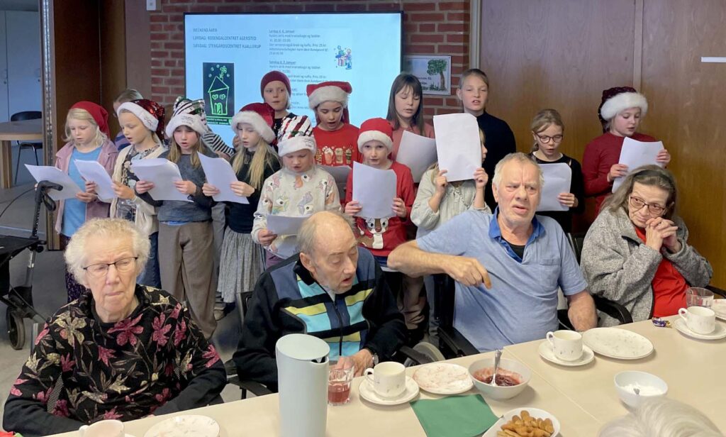 Hjallerup Kirkes frivillige Gå med Venner havde igen i år inviteret elever fra Hjallerup Skole til at komme til Stengården, hvor der skulle julehygges med beboerne på plejehjemmet.
