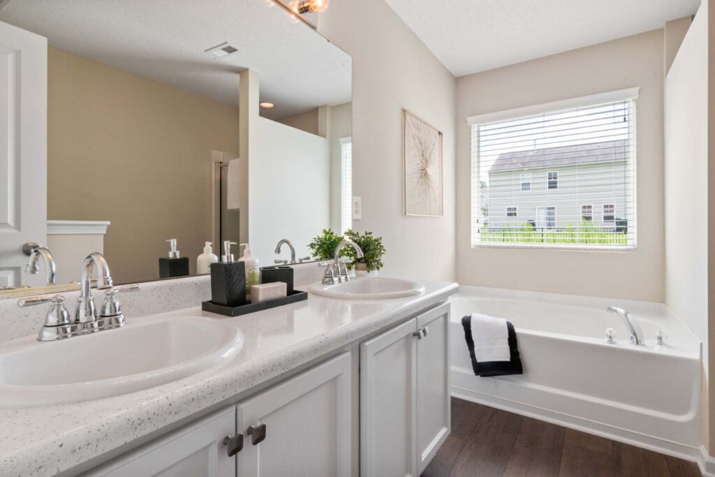 Du kan bruge en eller flere farver til at bryde det monotone udtryk, der kan forekomme i et helt hvidt badeværelse. Hvordan tænker du måske? Nemlig ved at vælge håndklæder, bruseforhæng eller en bademåtte, der er farverig, og netop farver som blå, grøn eller varme jordtoner kan give æstetik og en følelse af ro. Et andet tip, du kan overveje, er også at male eller tapetsere en enkelt accentvæg for at skabe kontrast i rummet.