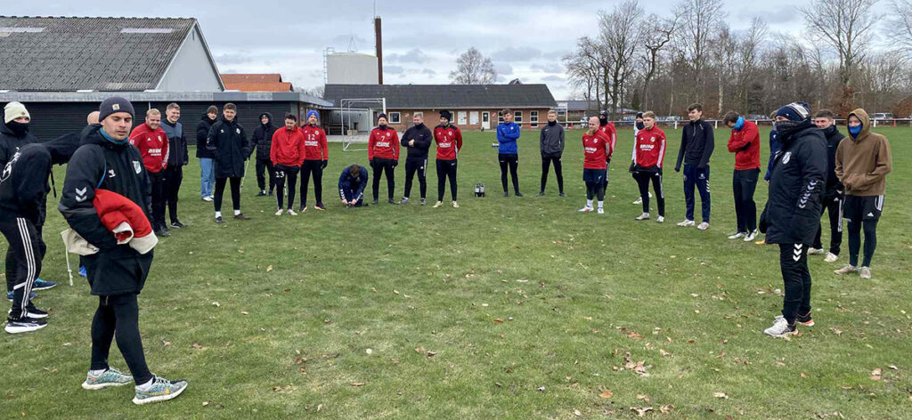 Flauenskjold: I bidende kulde og på frosthårde baner indledte fodboldspillerne i Flauenskjold lørdag sæsonen med den traditionsrige standerhejsning.